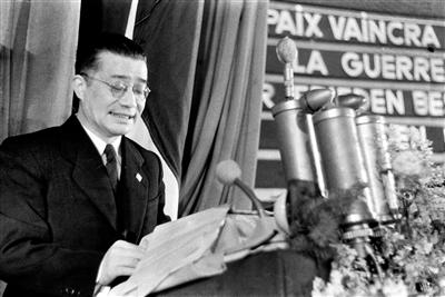 1951年2月21日至26日,世界和平理事会首届会议在柏林举行,中国代表梅汝璈在会议上发言。新华社发