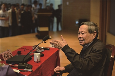 2014年4月14日,杨振宁在浙大演讲。新华社发