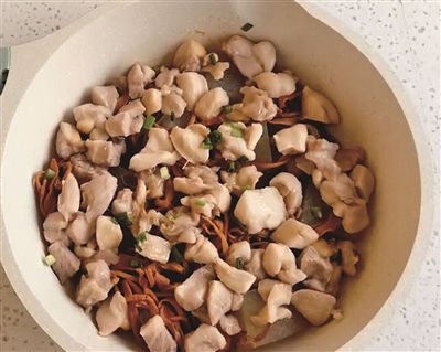 通讯员 董燕儿 商报记者 王然 “冬瓜桑拿鸡”是为减脂期人量身定做的菜品,鸡胸肉嫩滑不柴,搭配吸饱汤汁的清甜冬瓜和虫草花,全程不额外加油,靠食材本身的鲜味撑起整道菜。简单几步就能复刻,高蛋白低脂肪,营养均衡,减肥餐也能吃得有滋有味!烹饪步骤如下—— 1.鸡腿去皮去骨,切成均匀的小块,放入适量盐、料酒、生抽搅拌均匀备用; 2.冬瓜去皮,切成均匀的薄片,平铺在锅底; 3.放入虫草花和腌制好的鸡肉,尽量平铺均匀; 4.盖上锅盖,焖煮15分钟左右,香喷喷的冬瓜桑拿鸡就完成了。