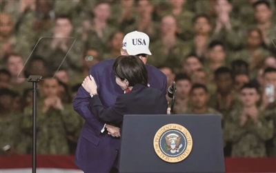 与特朗普亲切拥抱。据新民周刊微信公众号