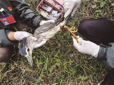 一位市民在路边发现一只受伤的夜鹭,经救助后将其放归大自然。