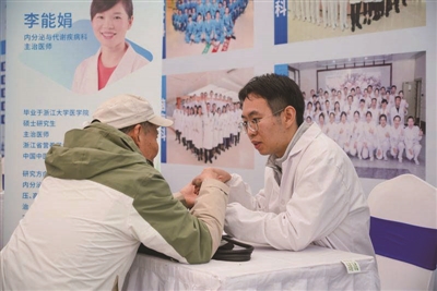 “老年人常存在关节僵硬、肌肉酸痛等问题,不少年轻人也因久坐久站患有肩颈腰劳损。所以我们在展位中特设了推拿体验,十多位浙江中医药大学的学生用专业的手法为市民朋友舒筋活络。”省新华医院展位负责人表示,“一整天大家都没有空下来过,日均要服务上百位市民朋友。”
