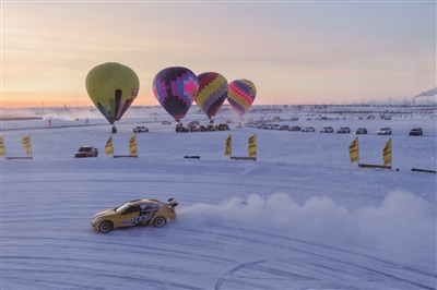 12月21日,内蒙古冰雪英雄会在呼伦贝尔市海拉尔区苍狼白鹿冰雪运动基地开幕。本次冰雪英雄会设置两条自驾线路,串联呼伦贝尔全域风光,还将举办2026中国汽车场地越野冰雪锦标赛等赛事,吸引了大量专业车手与赛车爱好者前来参加。活动将持续至明年3月。这是车手驾驶赛车在冰面上漂移(无人机照片)。
