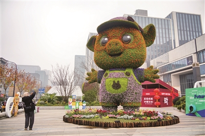 位于西湖区文三路学院路口的“福气猪猪”立体花坛换上了新年新装。全新亮相的小猪披上了明黄色外衣,搭配紫色T恤与粉色背带裤,静立于缤纷花丛之中,俏皮又灵动,向人们传递着温暖与欢愉。据悉,此次焕新采用了近3.6万株角堇,花期将持续至2月份。昨日记者在现场打卡。 商报记者 项凯 摄影报道