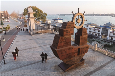 1月7日,游客在长江边的湖北省荆州市沙市洋码头文创园游玩(无人机照片)。近年来,荆州市依托沙市码头的悠久历史和工业文化,打造集多种业态为一体的沙市洋码头文创园。昔日码头、厂房变身城市新地标,成为人们休闲娱乐的好去处。