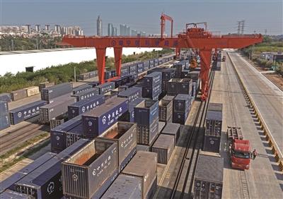 1月8日,南宁国际铁路港内货列进进出出(无人机照片)。记者近日从国铁南宁局获悉,2025年西部陆海新通道班列发运集装箱货物142.5万标箱,同比增长47.6%,首次实现年发运量突破百万标箱,再创历史新高。