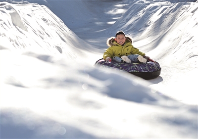 1月10日,一名小朋友在青海省海北州祁连县阿咪东索林海露营基地体验雪圈项目。入冬以来,祁连县依托雪山和林海生态资源,在阿咪东索林海露营基地推出雪地摩托、林间徒步等旅游项目,假日休闲消费持续升温,迎来冬季旅游热潮。