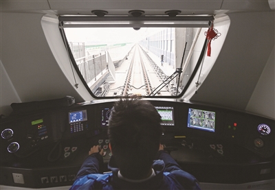 1月18日,天津市轨道交通Z4线一期(北段)正式开通运营。据介绍,Z4线一期工程线路全长43.7公里,设24座车站,本次开通运营的为线路北段,共计23.7公里,设置10座车站。作为连接天津市滨海新区南北片区与核心区的骨干线路,Z4线一期工程全线建成后,对于完善滨海新区现代轨道交通体系、推动区域深度融合将发挥重要作用。这是地铁驾驶员在列车驾驶室做发车准备。