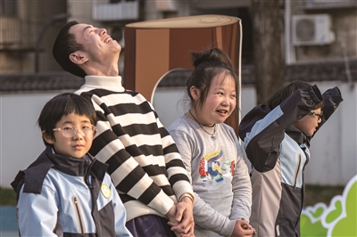 2021年,杭州市健康实验学校开始探索培智教育儿童戏剧课,在全省是首创,零经验零参考,孙乐是负责老师。“最初的时候,社团只有8名成员。最早排的三个戏是《小红帽》《三只小猪》和《葫芦兄弟》。这三个戏,排得都不顺利,特殊孩子入戏非常难。戏剧表演需要语言表达和情感投射,这些正是心智障碍学生的短板所在。”