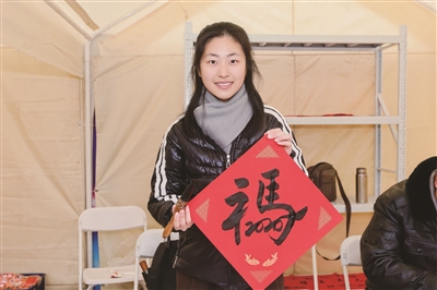 来自杭州运河书画社的成员为市民们书写福字。